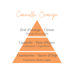 Les notes d’orange et de citron de la bougie parfumée Cannelle Orange apportent une fraîcheur pétillante, tandis que la cannelle et le pain d’épices libèrent des senteurs chaudes et gourmandes qui évoquent les douceurs de saison. En fond, la coumarine et le sucre d’orge laissent un sillage délicatement sucré, pour une ambiance cosy et raffinée.