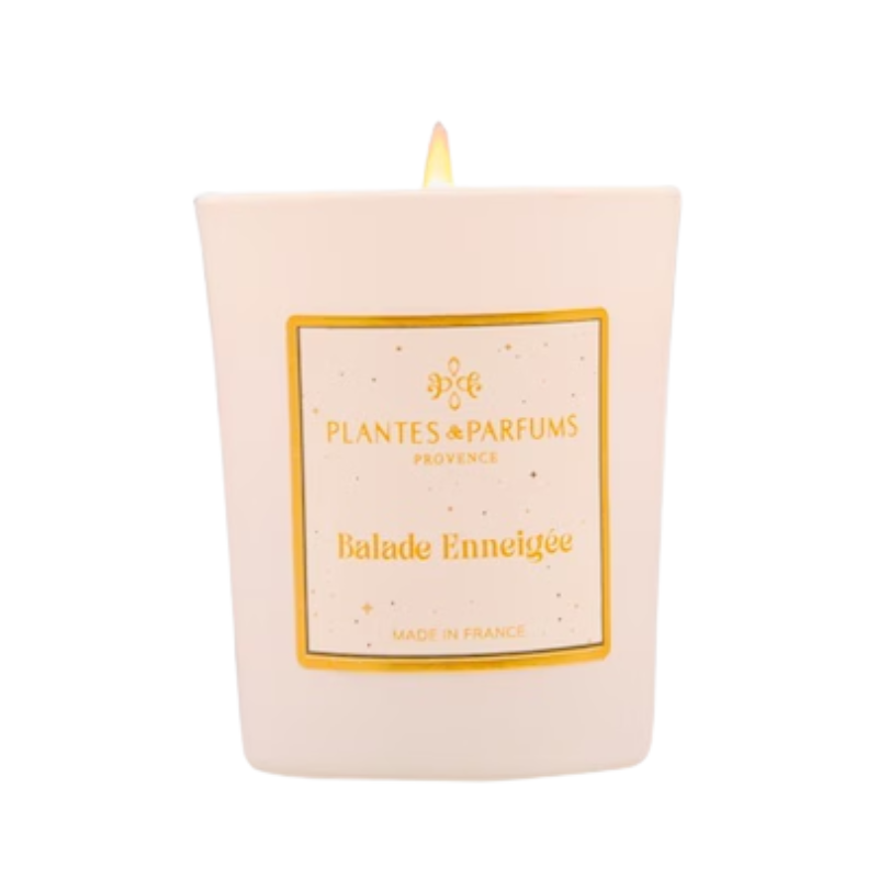 Plongez dans une ambiance douce et chaleureuse avec la bougie végétale parfumée Balade Enneigée.