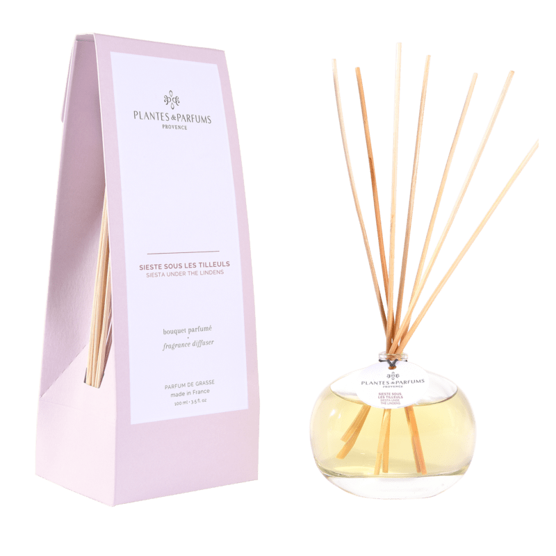 Le Bouquet Parfumé Sieste sous les Tilleuls délivre un parfum frais et délicat de Fleurs de Tilleul, des notes poudrées et aromatiques qui invitent au calme et à la sérénité.
