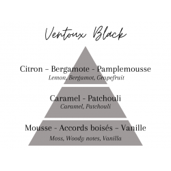 Laissez-vous captiver par l’Eau de Parfum Ventoux Black, une alliance saisissante entre la fraîcheur éclatante des agrumes et la richesse aromatique du patchouli associée aux bois précieux.