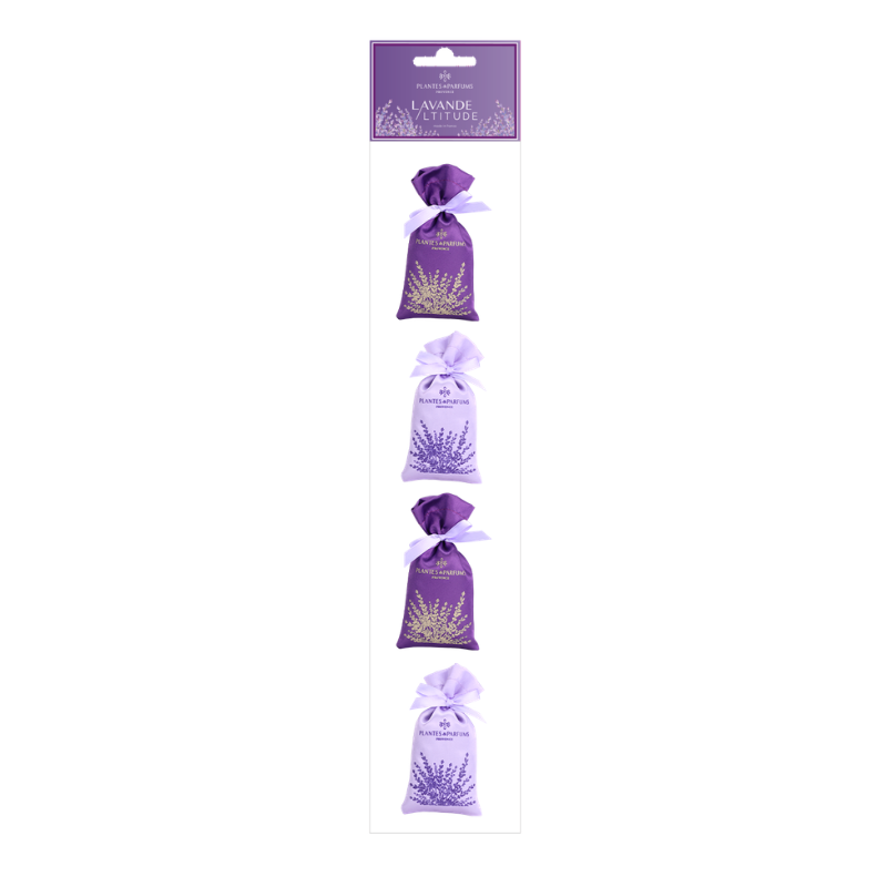 Dai un tocco autenticamente provenzale alla tua casa con questo set di 4 sacchetti in tessuto satinato riempiti con veri fiori di lavanda provenzale.